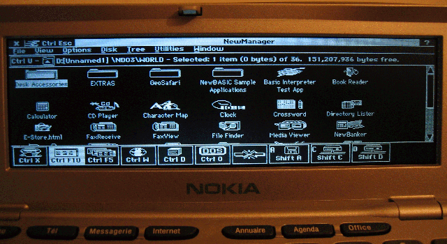 - L'autre nouvelle, c'est que GEOS (NDOR3) tourne presque sur le 9210i avec XTM (version d'évaluation et DOS 6.2). En fait, il bloque après avoir démarré.